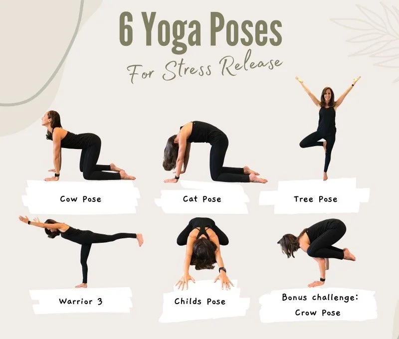 Yoga helps manage stress by combining physical poses, breathing exercises, and mindfulness to calm the nervous system, relieve muscle tension, and promote mental clarity. Here are a few poses to help release stress.